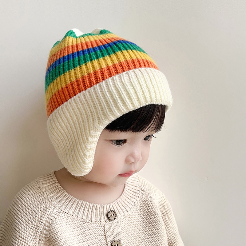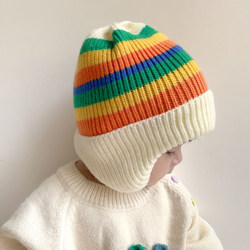 2022 Baby Hat Autumn Winter Men's And Women's Overhead Ear Protection Hat Korean Version Of Rainbow Knitted Hat Children's Warm Woolen Hat Tide